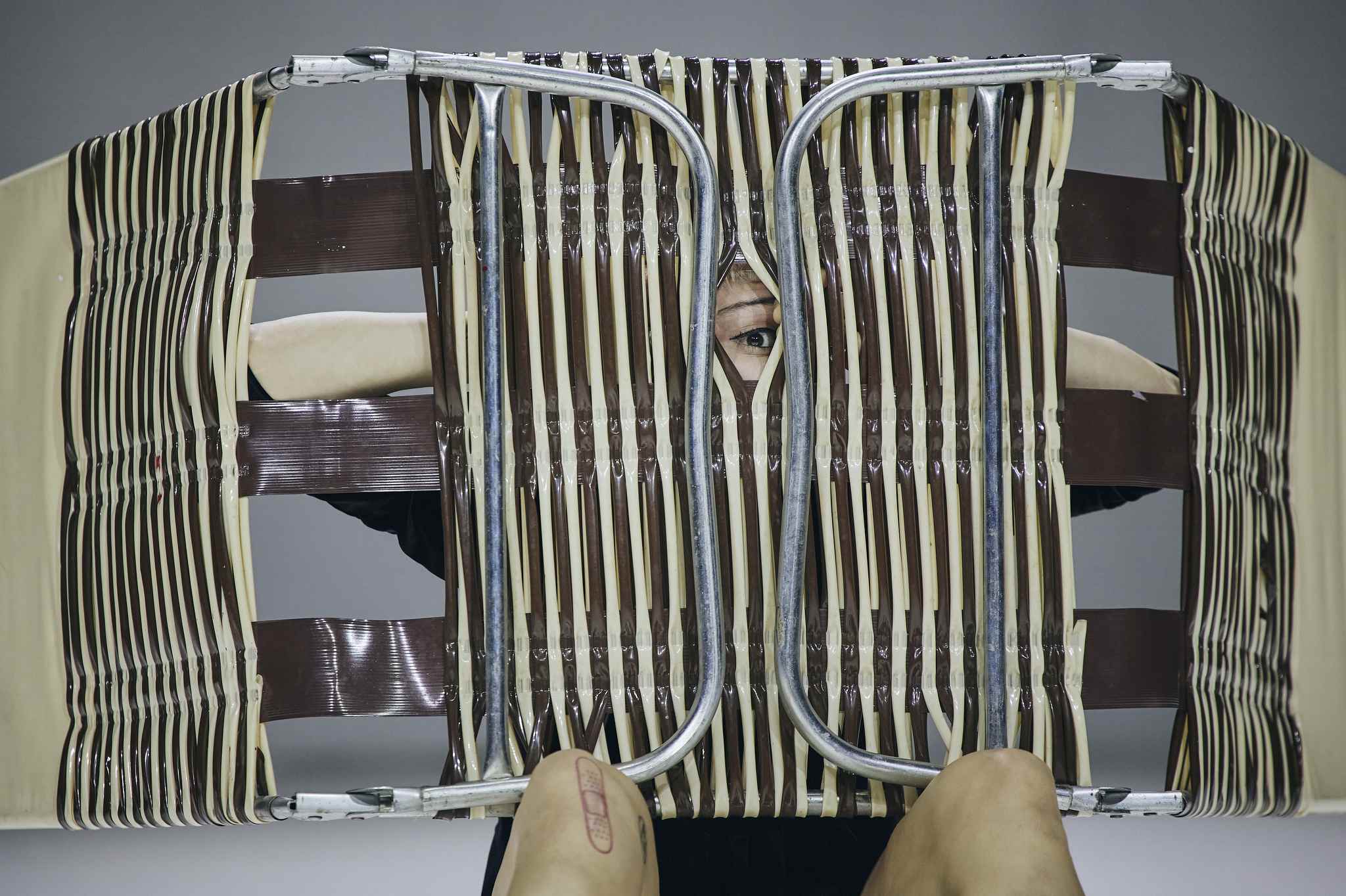 From the very first second of the opening piece, Nohow, the stage revealed a surreal and captivating image: dancer and creator Charly Santagado lay at the center on a folding bed, a kind of old fashioned lawnchair, surrounded by a circle of light. Throughout the performance, she used this object in fascinating ways: at one moment it was a railing, then wings, then a small protective fence behind which she hid.