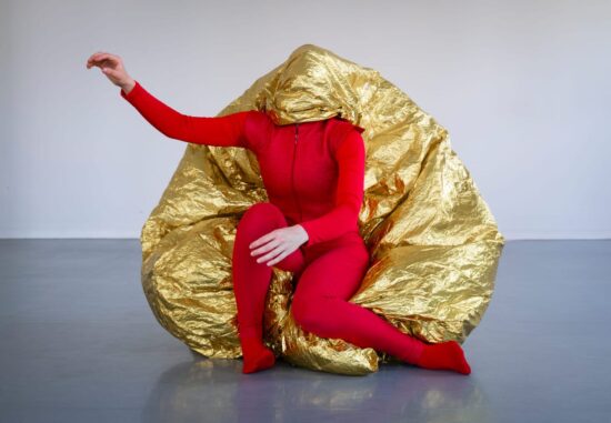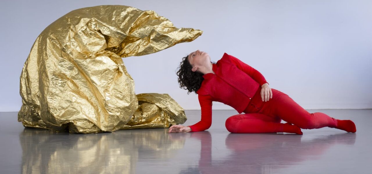 This is a dance performance for children that is exactly what it should be: simple, beautiful, and intelligent. It is a show that treats children as the intelligent beings they are, and does not compromise on high standards of movement and material. Fridman himself opens the performance, and immediately after, a large, living, moving golden plastic-covered blob rolls into the space. From it emerges one dancer (Noa Chen), while another (Dikla Rejevsky) remains inside. They perform a charming duet amidst golden, rustling material. The children are mesmerized, they’re witnessing something new, bodily communication, moving imagery. The parents, with the best of intentions of course, can’t help themselves and start narrating what’s happening to their little ones, as if their young age prevents them from having eyes and ears of their own. Since translating dance into words is such a delicate and difficult task, what I mostly hear are adults projecting their own interpretations into the child’s imaginative space. How hard it is for us to simply let the abstract experience be. For children, on the other hand, it’s entirely intuitive.