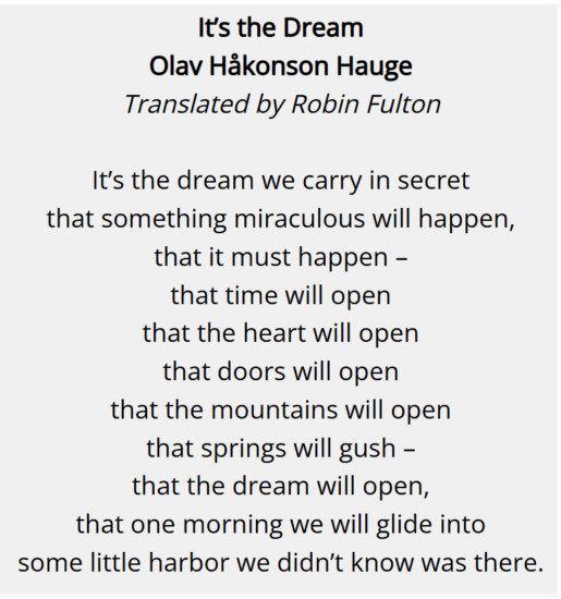The projector slowly turns, and the stage goes completely dark. The phrase “and darkness was upon the face of the deep…” rises in my thoughts. The blinding beam of light now points at us, and the brush is in our hands: do we continue following the habitual way of the past, or dare to imagine another world? The ending is poignant, without adding guilt on our shoulders, more reminding us: if not now, when? I am reminded of a beautiful poem by the Norwegian poet Olav H. Hauge, which shines its own light on the possibility of imagining.