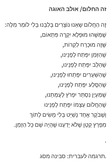 היכולת לדמיין היא לא פחות מקסם. מבלי לזוז, יש בנו את הכוח לעזוב לרגע את המציאות מול עינינו, ולהפליג לעולם אחר. אולי נדמיין עולם שיאפשר לנו להביע את מה שעל ליבנו ללא חשש ובושה, עולם של תקשורת מיטיבה בין בני האדם, החוזרים לשפה ככלי מרפא? או שמא עולם ללא כוח כבידה, ואז באמת נרגיש קלילים כשכל הדמעות יצופו מסביב, בועות בועות, במקום להיות תקועות איפשהו בין הקיבה לארובות העין. ואפשר גם לדמיין עולם בו אנחנו מפסיקים לספור, שש מאות שמונים ושלוש, שש מאות שמונים וארבע; עוצרים כי כולם חזרו הביתה, ואפשר להתחיל לנשום.
